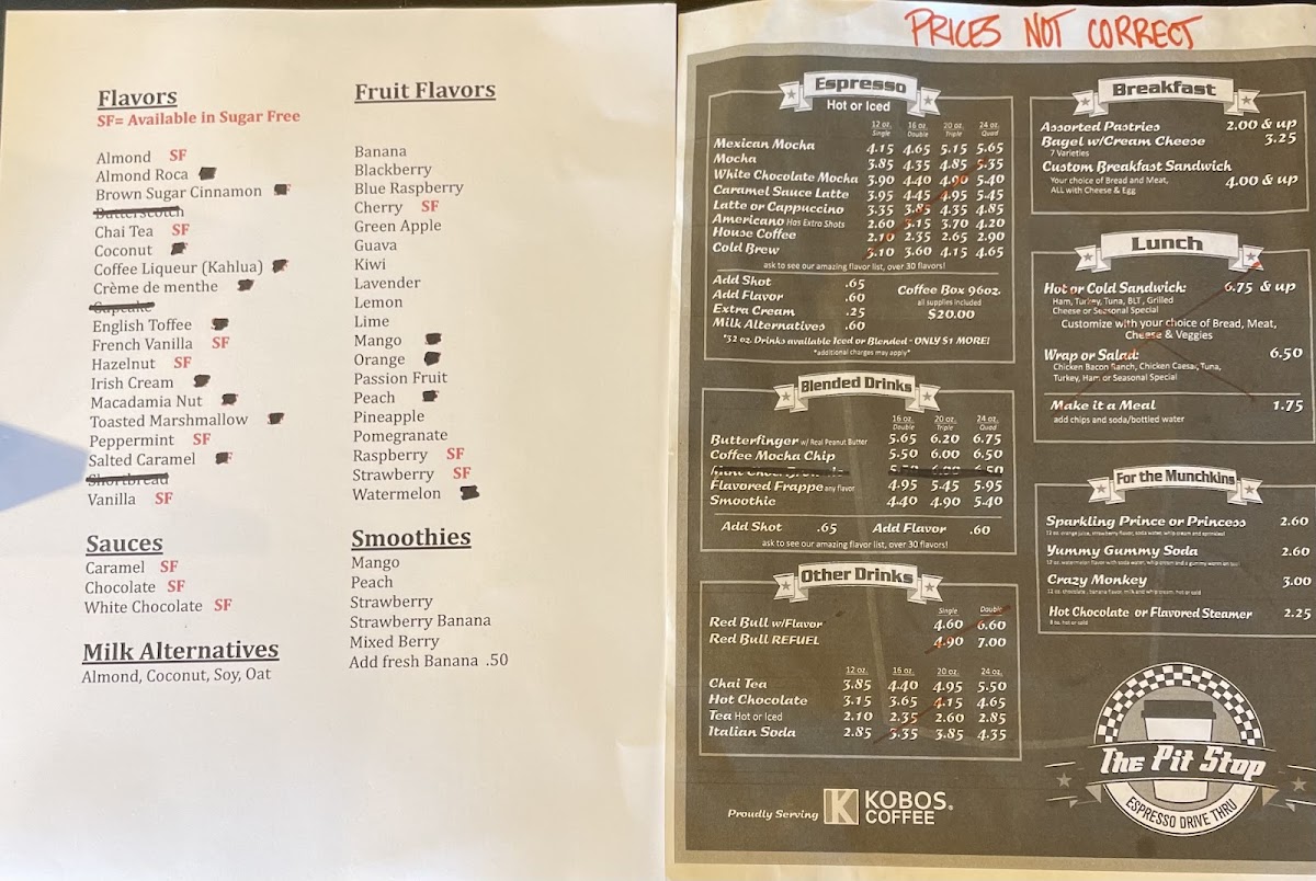 Overall, The Pit Stop Coffee Shop offers an inviting menu that caters to a variety of tastes and preferences, making it a great spot for any occasion.